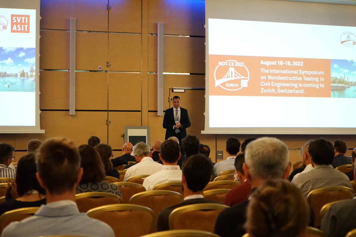 Dans ce contexte, l’organisation du prestigieux International Symposium on Non-Destructive Testing in Civil Engineering (NDT-CE) 2022 en Suisse par l’ASIT a revêtu une grande importance. Congrès à caractère scientifique, le NDT-CE a habituellement lieu tous les trois ans à des endroits sélectionnés et est mis sur pied par différentes organisations du monde entier. La partie principale du congrès qui s’est tenu à Zurich s’est étendue sur trois jours. Réunissant des participants de 27 pays, l’édition 2022 du NDT-CE a proposé des conférences majeures, ainsi qu’environ 150 exposés spécialisés répartis en quatre blocs parallèles, et offert ainsi au public professionnel une plateforme importante. Elle a accordé une grande place aux thématiques liées à l’utilisation de nouvelles technologies clés telles que l’intelligence artificielle, les réseaux de capteurs et les modèles de construction numériques.